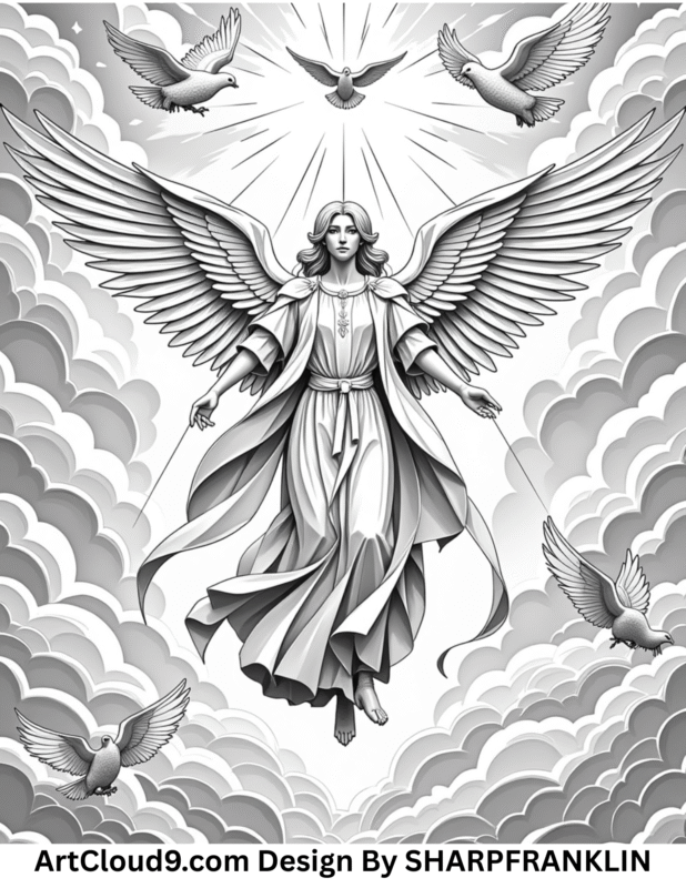 free coloring pages, ArtCloud9 coloring pages, printable holiday art, Christmas coloring pages, Thanksgiving coloring sheets, Halloween coloring book, angel coloring pages, adult coloring designs, ultra-detailed coloring images, full-page printable coloring, seasonal coloring art, intricate black-and-white coloring pages