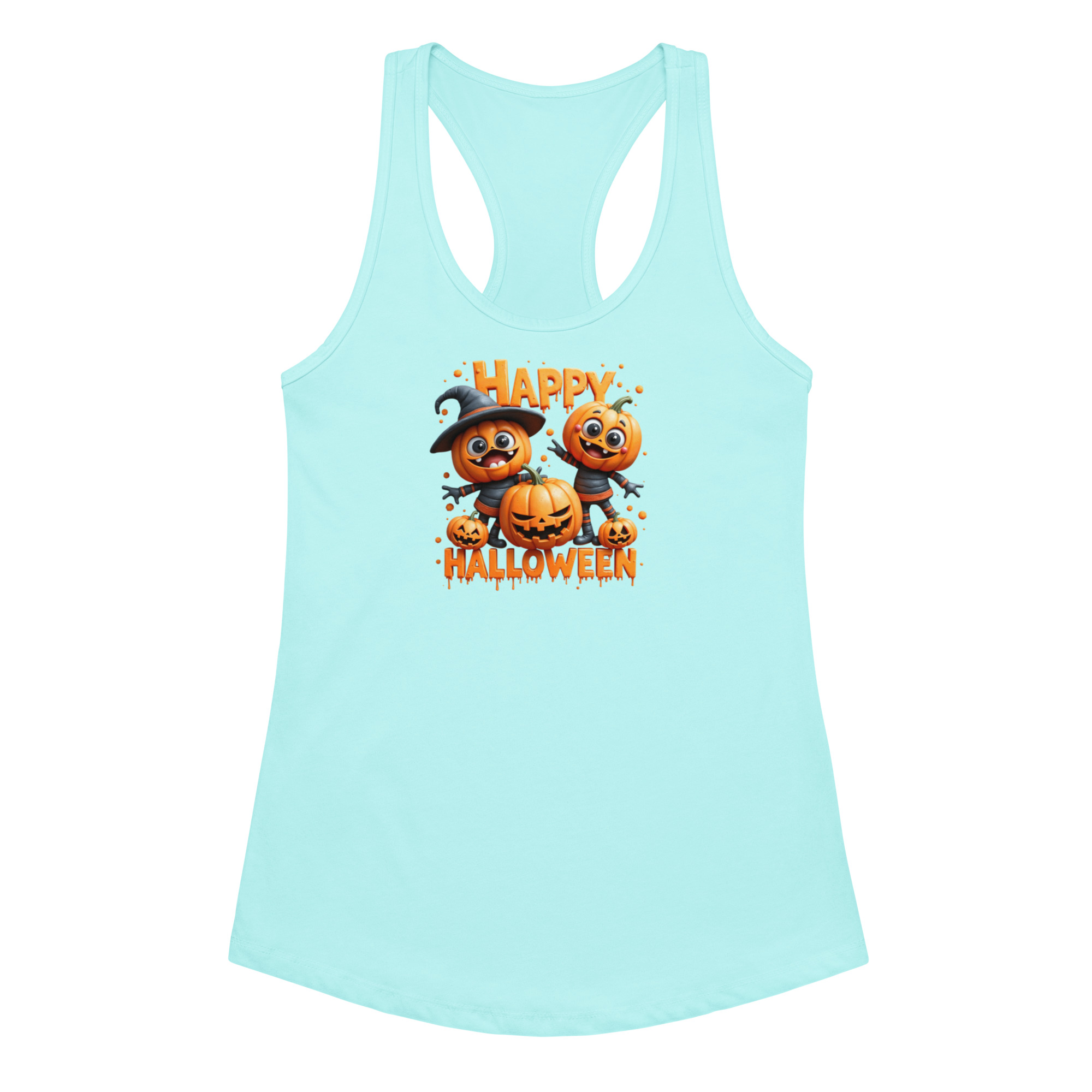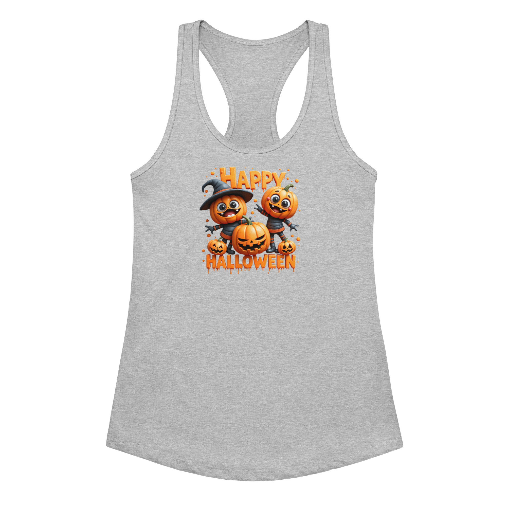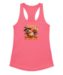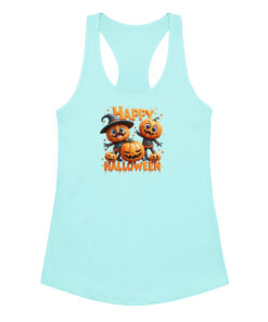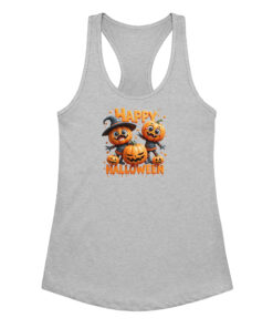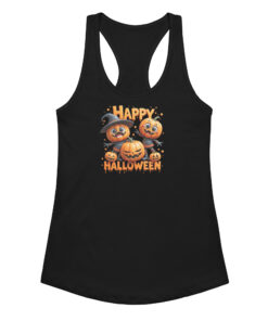 Pumpkins Happy Halloween | Women’s Fitted Racerback Tank Top | Cute Halloween Workout Shirt