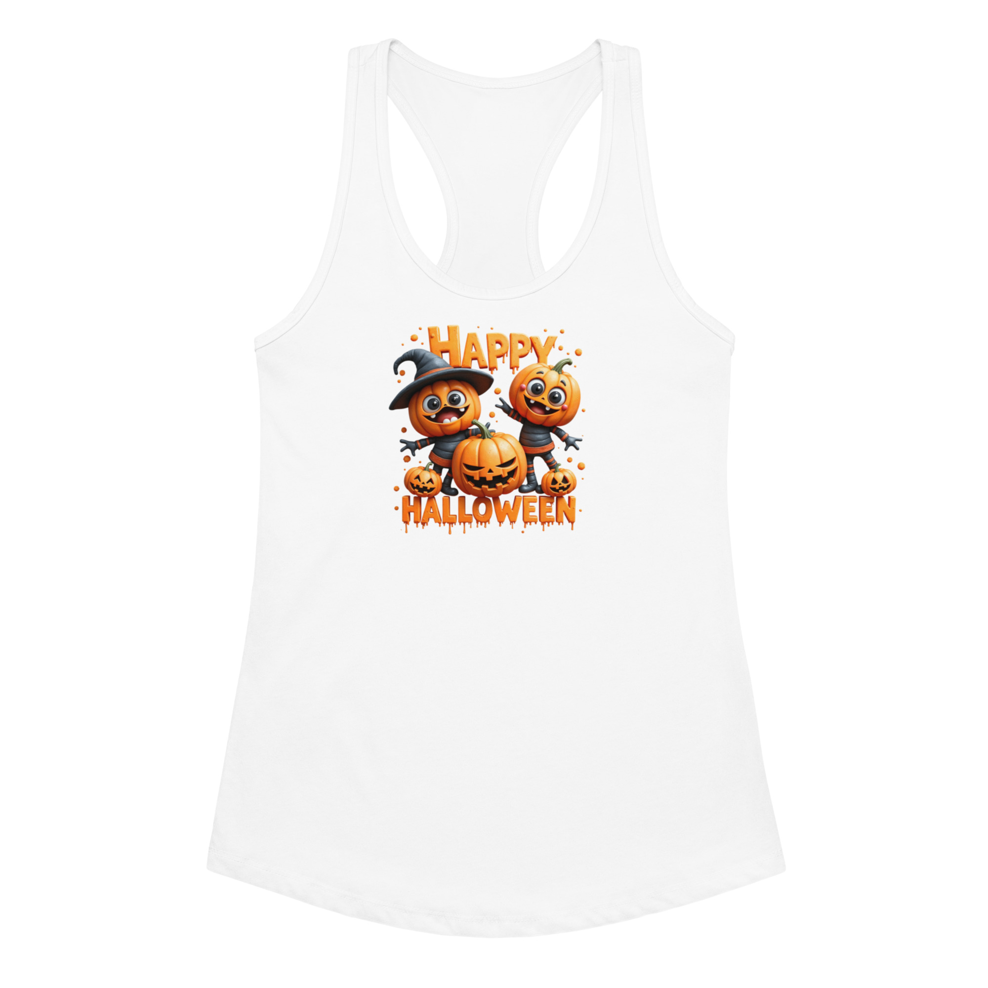 Get spooky in style with the Pumpkins Happy Halloween Women’s Fitted Racerback Tank Top 🎃🖤 Perfect for gym sessions, Halloween parties, or casual autumn outfits, this tank is lightweight, breathable, and designed to flatter with its fitted silhouette.